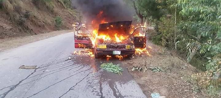 بھمبر سے سماہنی آتے ہووے ڈب سکس موڑ پر کرولا کار میں شارٹ سرکٹ ہونے سے آگ لگ گئی