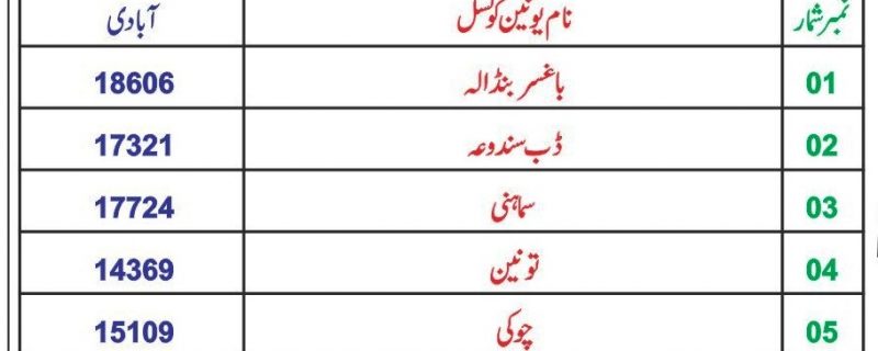 (نوٹ: ابھی تک یونین کونسلز کاباقاعدہ نوٹیفکشن نہیں ہوانہ ہی سیکرٹریز یونین کونسلز کی تعیناتی عمل میں لائی گئی ہے